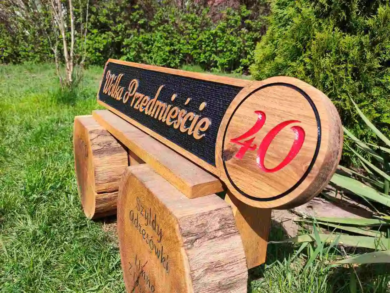 W odróżnieniu od tabliczek z przyklejonymi napisami, tekst na naszej tabliczce jest wygrawerowany w drewnie. Taki sposób wykonania zapewnia trwałość i odporność na warunki atmosferyczne. Grawerowane napisy nie blakną ani nie ulegają zniszczeniu, co gwarantuje, że tabliczka będzie służyć przez długi czas, zachowując swoją czytelność i estetykę.