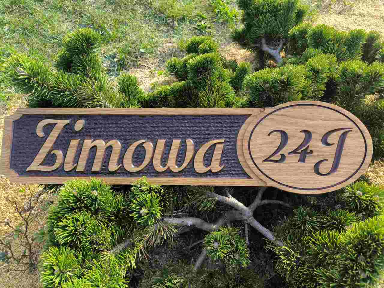 Drewniana tablica adresowa z numerem domu 120 cm – model Radosna z żywicą